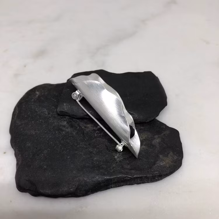 stort ostronskal som brosch storlek ung 5 cm x 1.5 cm. varje "ostronskal" är handgjort och unikt så de skiljer i form.