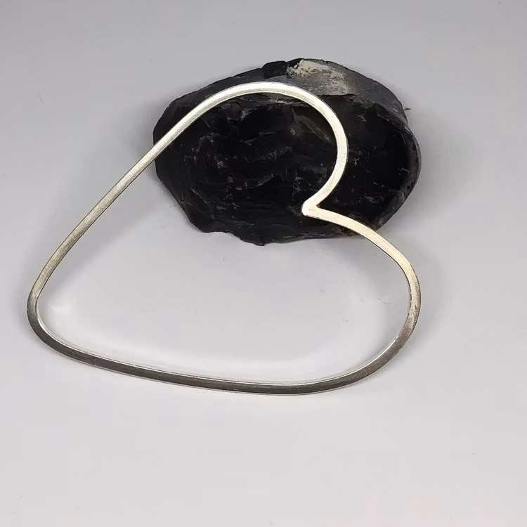 En stel armring som syns. Har formen av ett hjärta och är gjord i grov fyrkantig silvertråd ( 2,5 mm) .