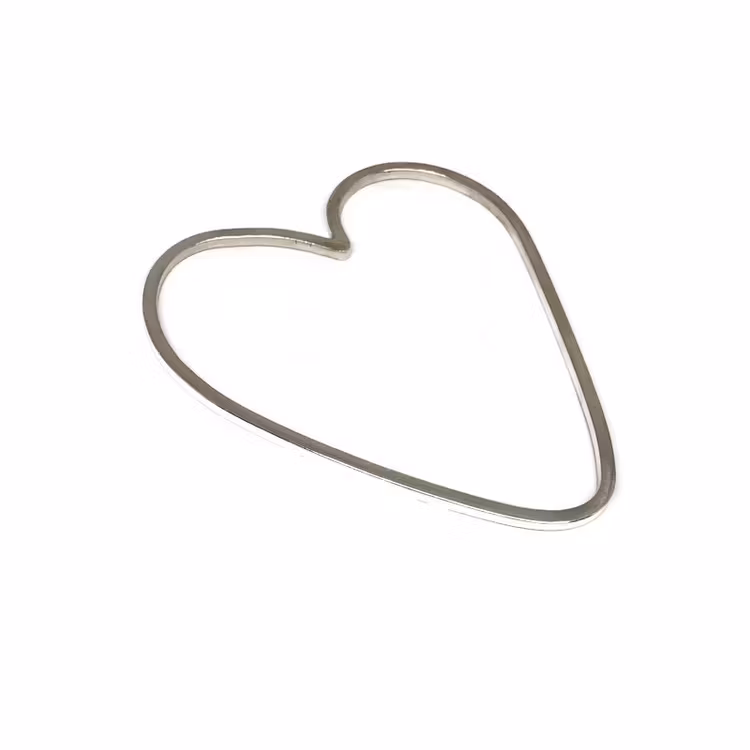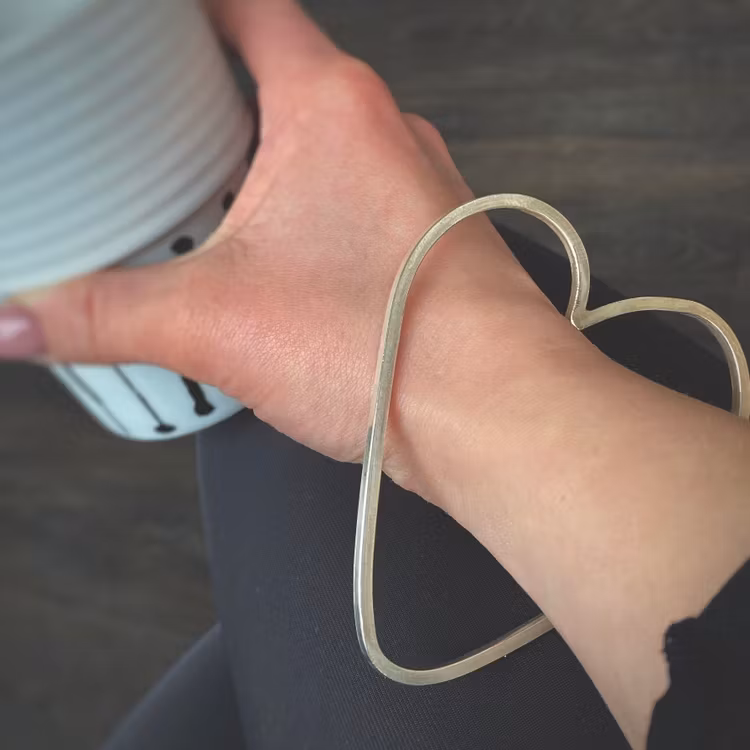 En stel armring som syns. Har formen av ett hjärta och är gjord i grov fyrkantig silvertråd ( 2,5 mm) . Hjärtat kan oc