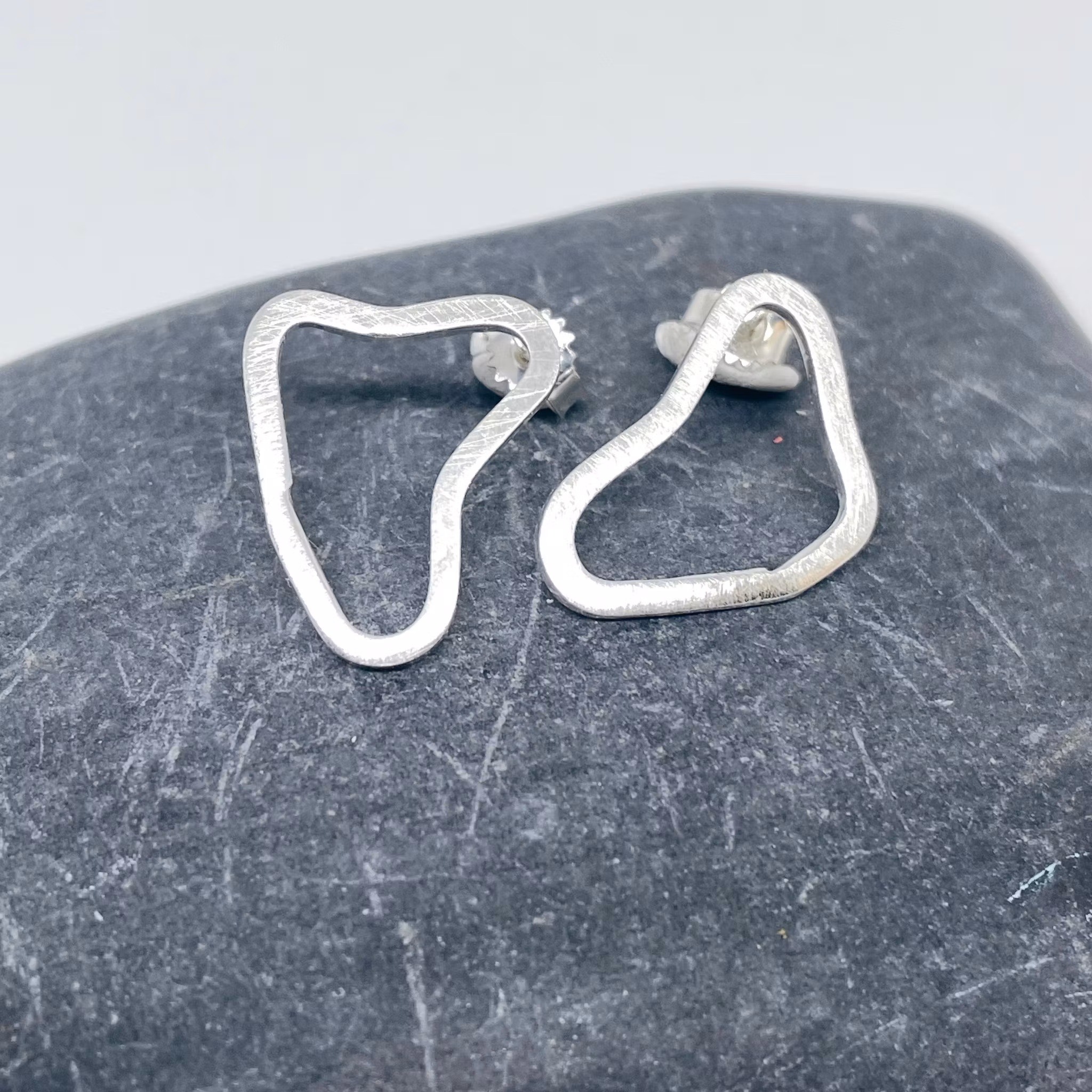 Varje örhänge har en unik form och storlek ca 2 cm långt, silvertrådens tjocklek 1,5 mm.